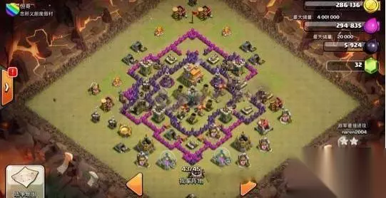 这款阵型可以说是综合防守能力非常强的一个七本阵型。 之所以这么说,是因为编者在七本的时候用过这款阵型。 在防守七本流行打法天胖能力非常不错。而且在对付屌丝流也有一定的优势。 这里分卡为大家介绍这款阵型优势和劣势。 优势: 1.迫击炮和法师塔的位置呈现三角布置。这样可以保证迫击炮火力覆盖到全阵。 而法师塔的火力可以保证中心辐射圈内的双库的安全性,保证最大化输出。 2.城堡内置偏下。一般会吸引地方从下方进攻。但是,下方城墙边角多, 会大大增加进攻方破墙难度。炸弹人很难一条边角炸进内圈。从而会直接引导胖子走位到外圈。 3.防空塔的两个位置,之所以这么摆放,也是更好的保证对天使的威胁性, 一方面不会被先秒掉。另一方面可以保证对天使第一手的攻击性。 4.大本外置没有争议。12点方向陷阱居多,如果从大本位置攻入, 会遭到更多的防守阻力。同时,此阵型完美对称,外观非常漂亮。 劣势: 黑水罐有些靠外,当然对于7本来说,黑水也攒不了多少。 部落冲突7本神阵TOP 9: