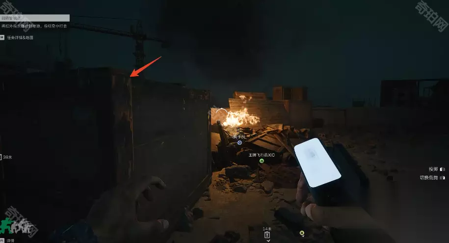《三角洲行动》黑鹰坠落第六章红外指示器扔法攻略 一、关于任务指引 在我们左上角中提示我们将红外指示器扔到楼顶,指引空中打击 但实际上我们扔到屏幕UI提示的平台上即可,并不是真的要扔到楼顶