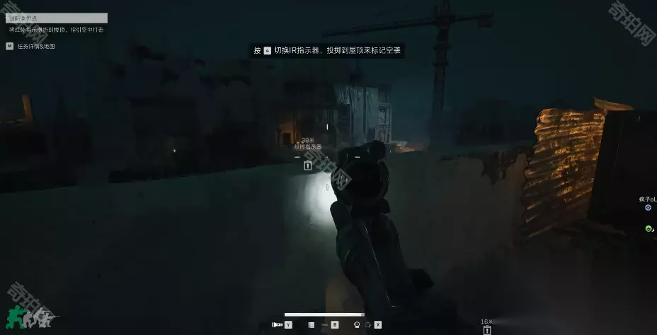 二、红外指示器安全扔法 1、首先我们根据任务指引拿到空袭指示器,然后前往这栋楼的楼顶