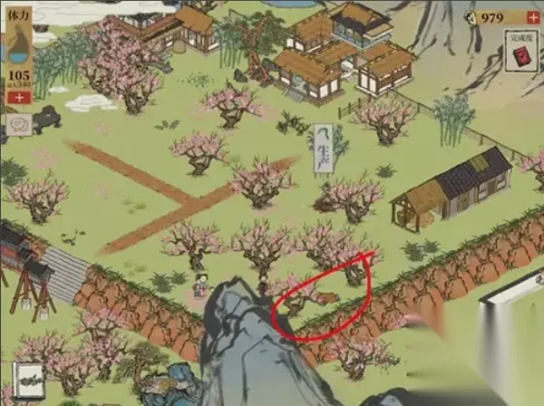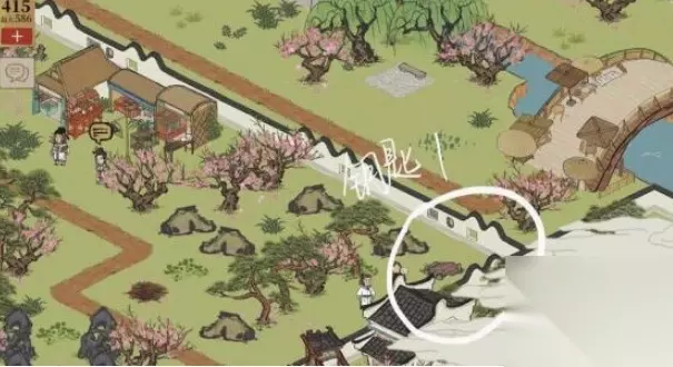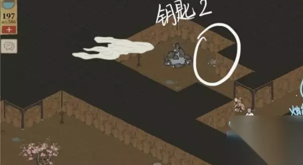 钥匙位置介绍: 第一把钥匙: 在桃花坞的鸟鸣居附近,如下图所示。