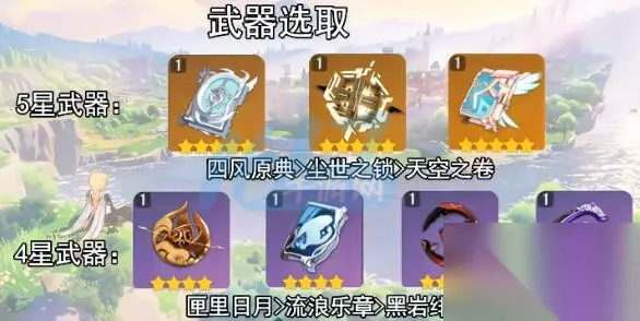 主词条: 理之冠:暴击率 空之杯:首先岩元素伤害加成,次选攻击力 时之沙:攻击力 副词条:暴击率和暴击伤害-攻击力百分比-充能 二、武器选择 五星 毕业武器:四风原典 解析:暴击率武器,加上被动效果很强,适合凝光。 优先度:四风原典>尘世之锁>天空之卷 四星 最优四星:匣里日月 解析:主属性暴击率,武器效果适合凝光。 优先度:匣里日月>流浪乐章>黑岩绯玉>昭心