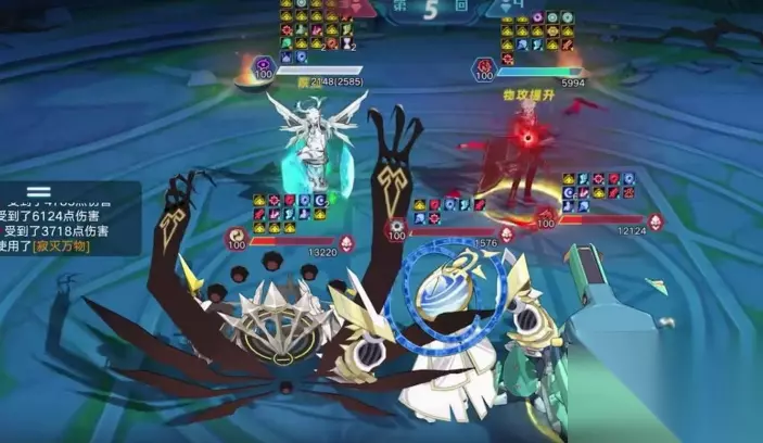 4、烈火.生: 卡奥斯带速刷特性,然后卡奥斯优先推掉弗利嘉,龙马,剩下上古时候卡奥斯血量少,再光明英雄上场三技能一直锁血,仅剩几滴血就残血击杀。如下图: