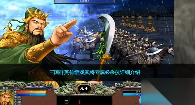 必杀技篇(21个) 剑系: 1连刺 熟练度60习得,适合杀敌将,打兵不给力。 2斩铁 熟练度90习得,连刺升级版,适合杀敌将,打兵不给力。 3烈风(实用的必杀技) 熟练度120习得,清兵速度极快,杀将一般般。 扇系: 4龙卷 熟练度60习得,范围大,碰到高防的兵(铁人等兵种)没啥用。 5迷魂(对兵有点变态) 熟练度90习得,有概率变成自己的兵种。 6流萤 熟练度120习得,杀将牛,杀兵一般般。 刀系: 7拖刀(比较变态) 熟练度60习得,有极少概率瞬秒比自己武力低的武将。 8挑斩 熟练度90习得,对单兵伤害极高。 9一击 熟练度120习得,瞬间伤害高,打兵一般般。 枪系: 10旋樱 熟练度60习得,差。 11豪烈 熟练度90习得,一般般。 12暴雨 熟练度120习得,升级版旋樱,效果还行。 弓系: 13贯日 熟练度60习得,直线攻击聚气较慢。 14血翼 熟练度90习得,升级版贯日直线攻击。 15电光 熟练度120习得,直线攻击清兵速度较快。 全武器系: 16大喝 5样熟练总合230:习得大喝,410:大喝精通,一般般。 17乱舞 5样熟练总合330:习得乱舞,520:乱舞精通。和神鬼乱舞武将技类似。 18灭绝 5样熟练总合430:习得灭绝,670:灭绝精通。清兵速度可以。 19霸者之威 5样熟练度均达到100:习得霸者之威,160:霸者之威精通。清兵速度较快。 20王者之风 5样熟练度均达到130:习得王者之风,190:王者之风精通。清兵速度较快。 21皇者之路 5样熟练度均达到160:习得皇者之路,220:皇者之路精通。远距离长直线攻击,清兵速度较快。 注意各个系熟练度满级255,总熟练度1275。熟练度分为初阶、进阶和精通3种。 专属必杀技篇 剑系(12个) 1刘备:仁者无敌 刘备 抱持杀生救民之意志,持剑凌空乱斩,无数剑气向四面八方疾扫,令敌军避无可避。黄色刀气必杀,在碰到高防兵种(阵法加的也算)时,几乎没什么用。 2曹操:逆我必杀 曹操 凝聚杀气于手中之剑,霸道无比的凶残横斩,将灭亡眼前敌军。类似于斩铁必杀技。 3周瑜:破浪干刃 周瑜 手中锋刃撕风快斩,气刃立即以一化干,呼啸而去。很强的必杀技清兵达到400+。 4孙权:惊涛怒斩 孙权 以气化刃,猛然狂劈,势如惊涛骇浪,令四方敌军无处可避。瞬间清兵速度快。 5卑弥呼:八歧牙 卑弥呼 利剑快斩,八道锐利剑光疾飞而出,恰似倭国传说魔兽之形。黄色刀气必杀,不破防,没什么用。 6张良:圣极轮(霸王再临) 张良 将剑气化为实体光轮飞散而出,中招者非死即伤。追踪光环类,不破防,没什么用。 张良:初始武力85,智力100;张良和诸葛亮是初始智力最高的男性武将。兵种龙炮侍衞:強大力量的特殊士兵,所背负的龍砲威力驚天动地。但射程不及弓兵和投石兵(是十大神兵兵种之一)。 7郭嘉:一剑惊虹 郭嘉 将无比剑气凝聚成一点放出,路径上敌军无不披靡。效果一般般。 8陈宫:一刀绝空 陈宫 将无比刀气凝聚成一点放出,路径上敌军无不披靡。缩小版灭绝。 陈宫:初始武力62,智力90;+2特性心眼:主将时战前布阵时,有机率随机消除敌方一个军师技。机关兵驱动:主将千人战时,召唤大批机关兵助战。 9高祖刘邦:王者无极(霸王再临) 高祖刘邦 称皇封帝的无比霸气加以升华,化为实质杀气激射而出,不断杀伤周围敌兵。两个皇者之路+霸者之威,就是这么牛。 高祖刘邦:初始武力90,智力90;坐骑龙,千人战移动速度较快。攻擊自帶三國群英傳7第一槍震雷青龍戟特效:揮舞可捲起無數閃電退敵清兵較快。兵种龙炮侍衞:強大力量的特殊士兵,所背负的龍砲威力驚天动地。但射程不及弓兵和投石兵(是十大神兵兵种之一)。 10韩信:仁义无疆(霸王再临) 韩信 经世济民的仁义之气化为实质刀罡斩杀不义之军。一般般。 韩信:初始武力90,智力90。 11萧何:紫微决(霸王再临) 萧何 引动紫微七星之力形成实体光弹袭击敌军。效果一般般。 萧何:初始武力90,智力90。 12范增:妖魂冲霄(霸王再临) 范增 引动九幽妖气直冲天际,将周围敌兵尽数击杀。类似炼狱魔刀的被动效果。 范增:初始武力90,智力95。 扇系(4个) 1.大乔:幻舞艳光 大乔 扇舞炫目华光,使众多敌兵丧失心智,反为我军效力。和迷魂必杀技差不多。 大乔:初始武力70,智力80;+3特性 飞刀:个人每次攻击时有机会射出飞刀,暗算敌军。扇术精髓:个人持扇时,大幅提升杀伤力。媚力:主将时,有少许机率诱使敌方两成士兵倒戈。 2.司马懿:灭魂芒 司马懿 随手挥扇,无数黑光邪芒脱手飞出,追魂夺魄,灭死敌而后快。黑色版乱舞必杀技。 3.貂蝉:绝代风华 貂蝉 灿烂夺目的华丽绝技,四射的七彩光芒,敌军一触,非死即伤。和幻舞艳光差不多。碰到高防兵种无效果。 貂蝉:初始武力80,智力88;+3特性媚力:主将时,有少许机率诱使敌方两成士兵倒戈。剑术:个人持剑时提升杀伤力。刀术:个人持大刀时,提升杀伤力。 4.庞统:凤羽袭 庞统 羽扇轻挥,释出绵密火羽,看似柔弱,实则追迹伤人,令无数敌军化为焦炭。没啥用。 大刀系(11个) 1.关羽:青龙怒 关羽 高昂斗志升华为巨大刀刃,向前轰然重劈,其威似能分天裂地。直线一刀伤害给力,抬手动作慢,自带青龙怒吼的音效。 2.甘宁:锦帆天浪 甘宁 手中利刃连番舞动,宛如波浪的锐利水刃破空而去,敌军走避不及者,非死即伤。黄色刀气必杀,己方优势时很强,己方劣势时很差。 3.典韦:万钧破 典韦 以万钧之力猛贯入地,令无数气流破土爆裂,袭杀周围敌军。杀伤力还行。 4.小乔:花影旋岚 小乔 手中兵器运转如飞,旋风中夹带缤纷落英,看似柔美,实则凌厉非常。杀伤力还行。 小乔:初始武