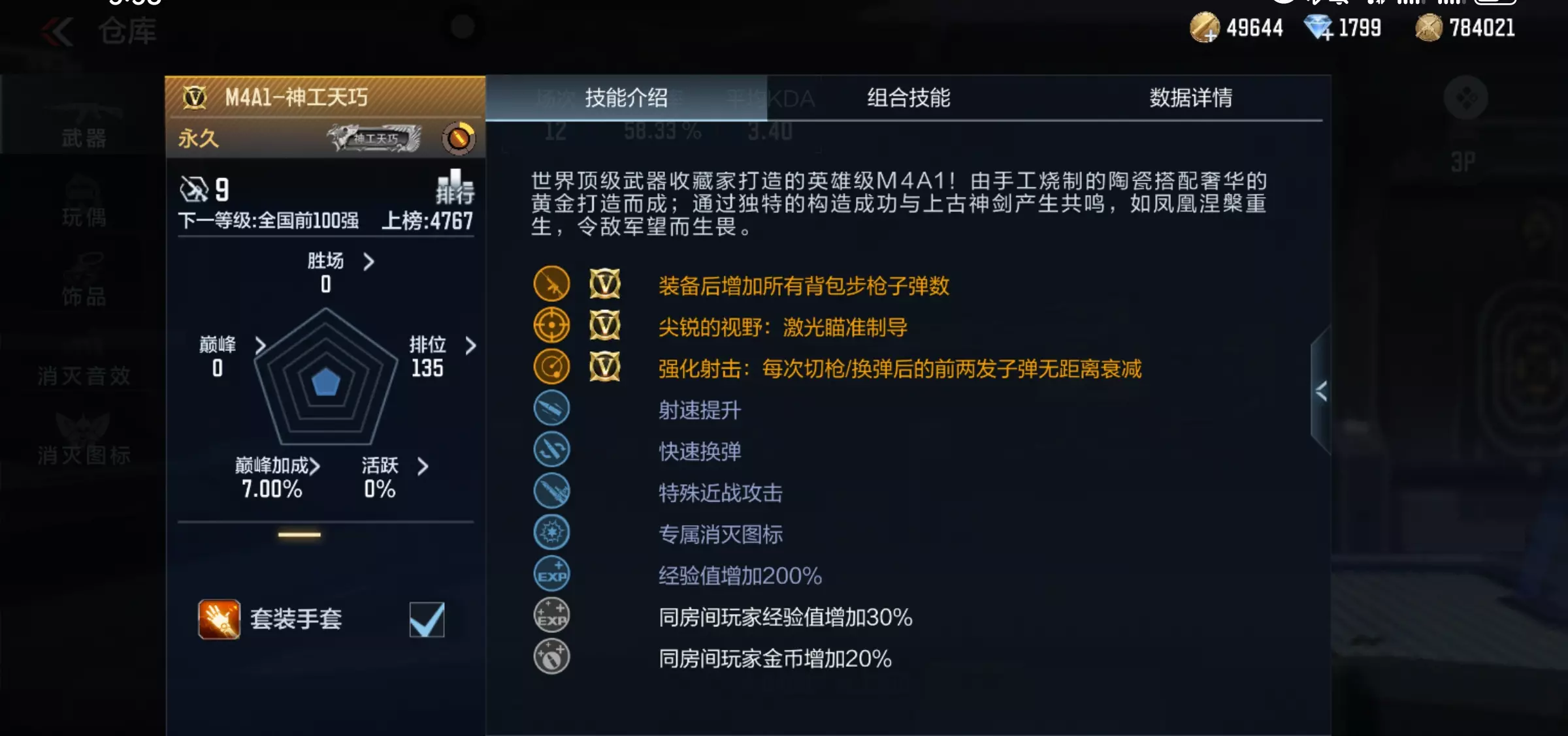 最值得称赞的是套装技能:专属套装手套、可以观测一定范围内的手雷落点,局内可以呼叫神工天巧套装补给箱,这个套装武器也让这把主武器有了“小星象”的美称!