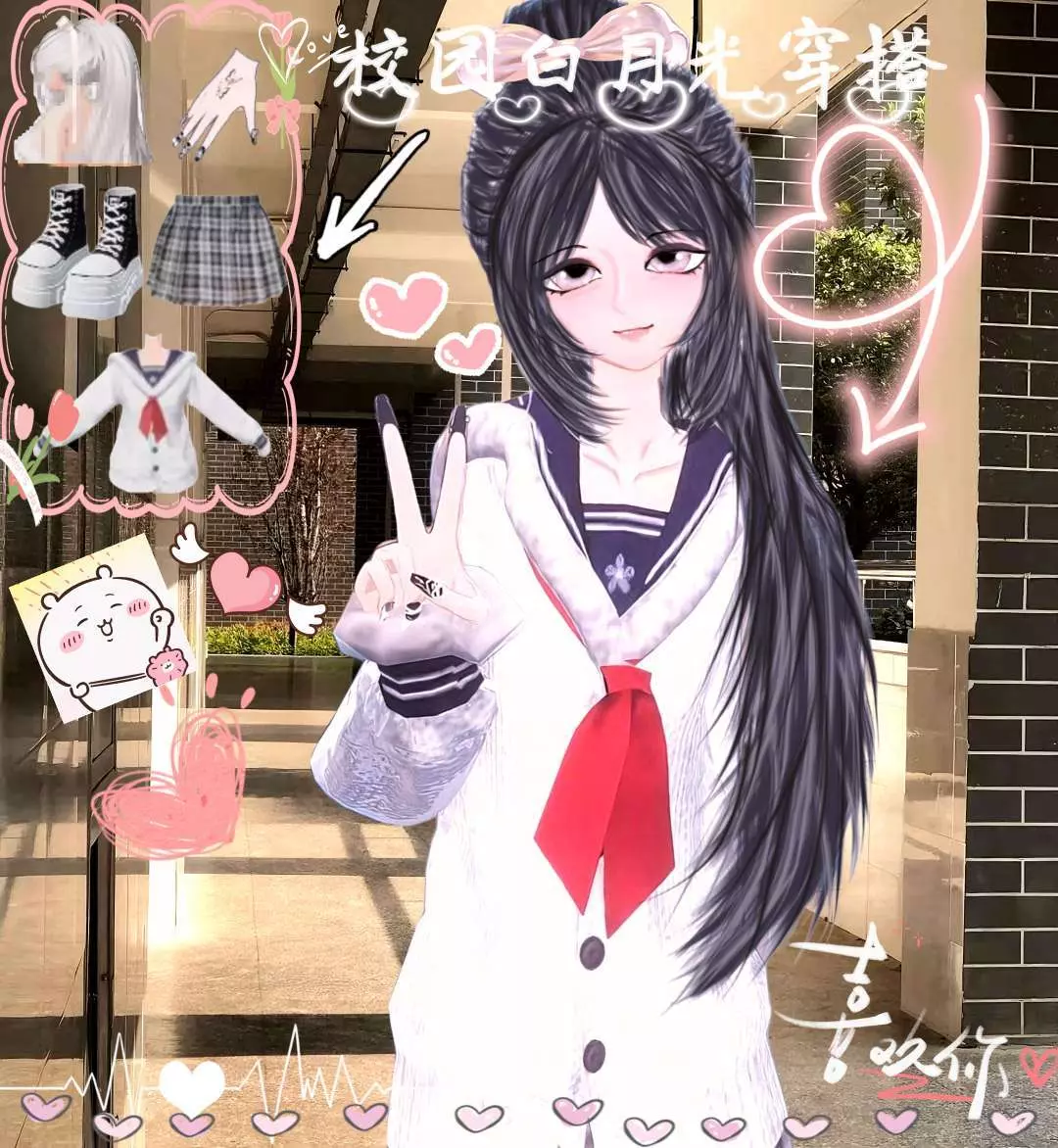 这一身穿搭主打青春校园风 的白月光类型,水手服元素经典又有少女感,红领结增添亮色与活力,白色针织开衫柔和又保暖,适配校园场景,而且还营造出清新、纯粹的白月光氛围,我感觉仿佛是校园里青春美好的具象化,把纯真与朝气穿在身上,我运用了简约元素勾勒出让人心动的青春初恋白月光的模样 😉