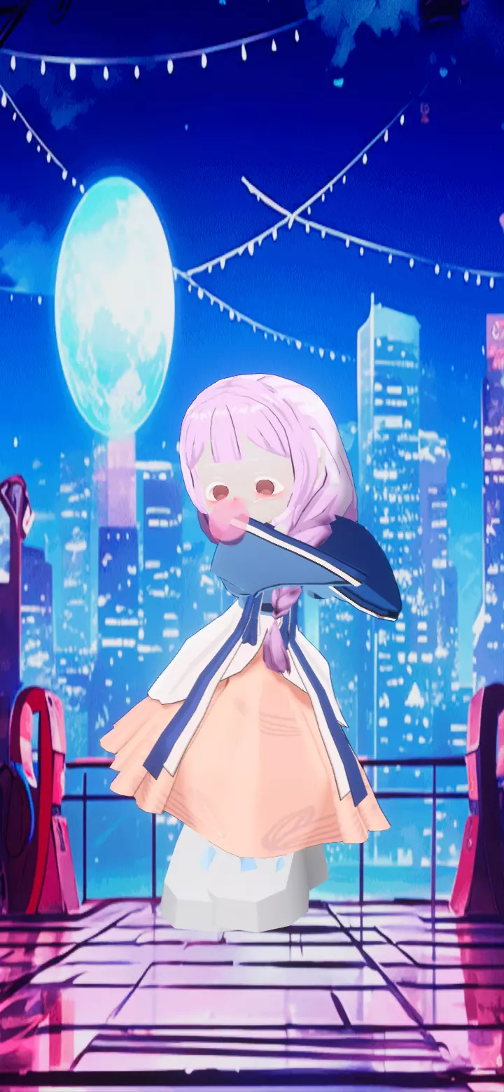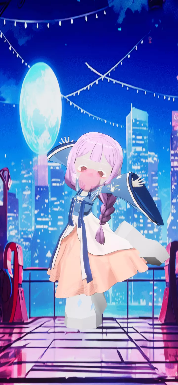 小时候我的头发粉还是浅的衣服也是我可以穿的还是穿着蓝色的小鞋子。吹着泡泡糖。