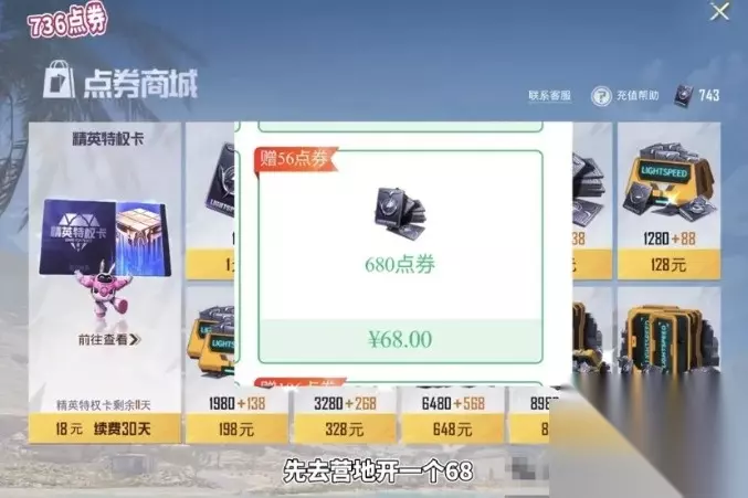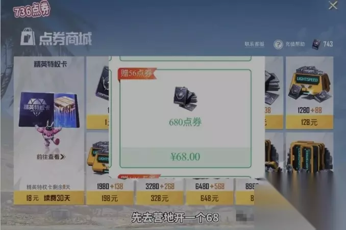 还有一种方法,可以多获得300+军需币,前提是首次积分还没领。同样营地充一个68,再开两个月错全卡,或者去营地充30也可以。