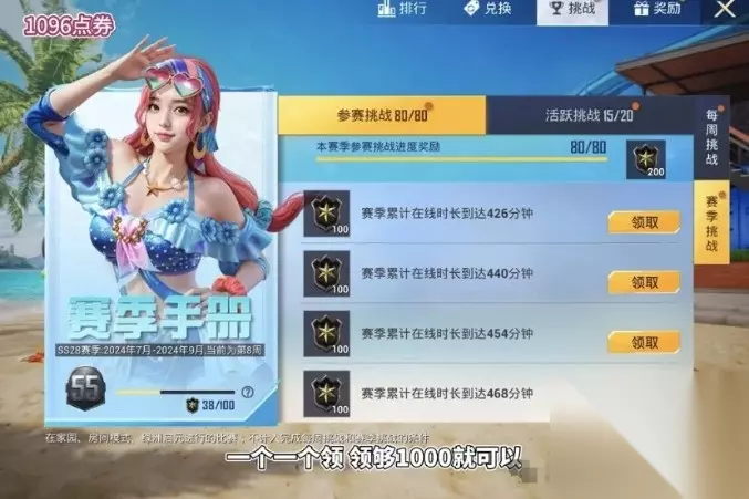 接下来有1,000点券购买活跃礼包,