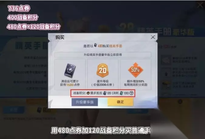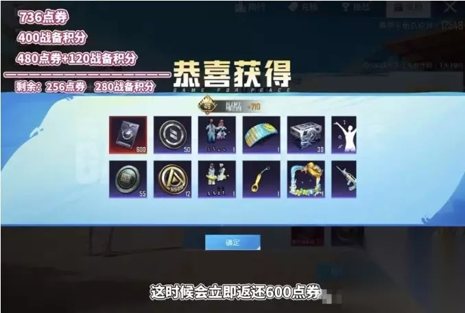 手册满级后,用480点券加120战备积分买普通手册,这时候会立即返还600点券。