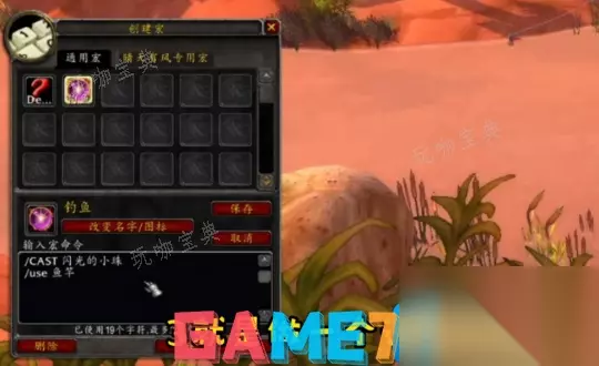 3、做一个钓鱼的宏,直接挂鱼饵,宏如下: /CAST 闪光的小珠 /ues 鱼竿