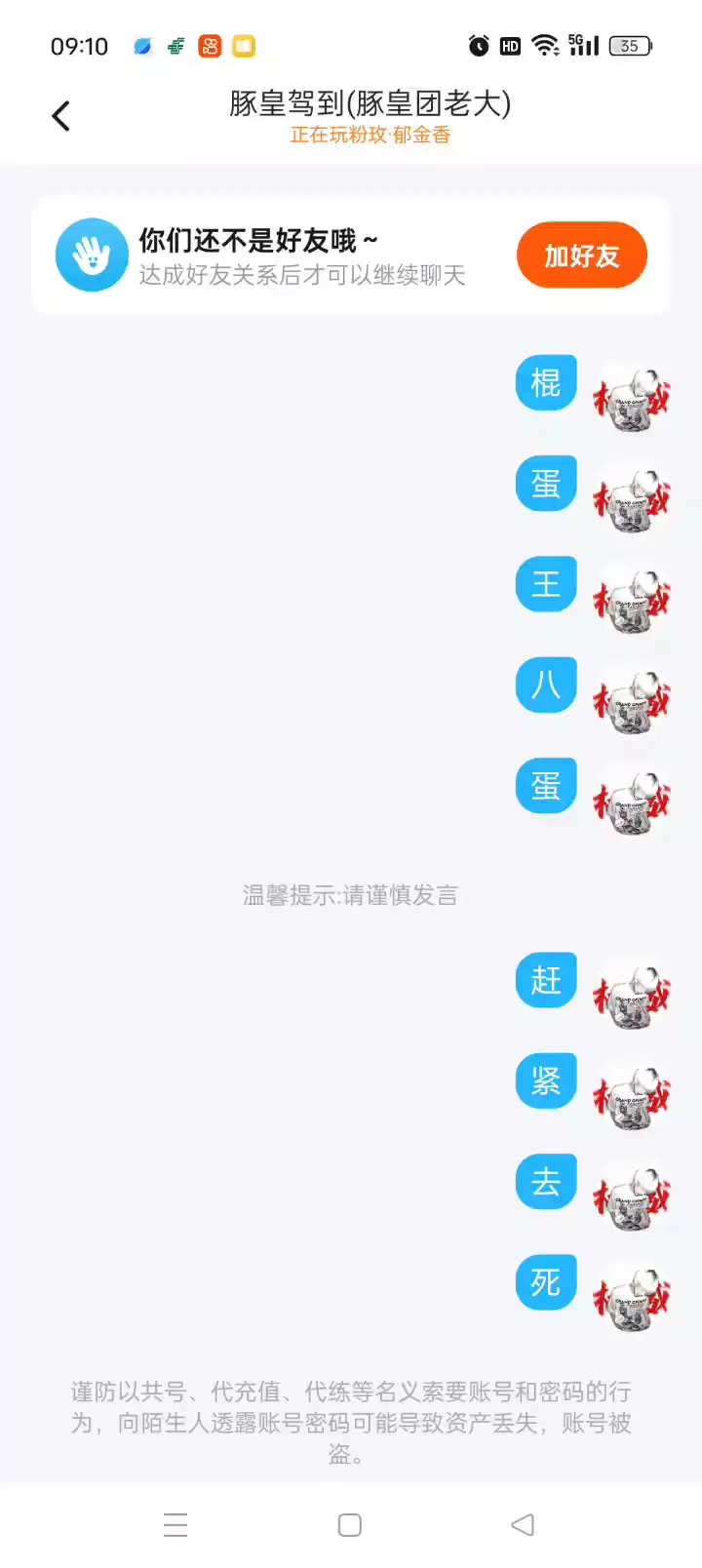 大家赶紧举报这个人,我还以为他加我有事呢 他的头像换了我的,然后就把我给删了,真是莫名其妙,那个家伙