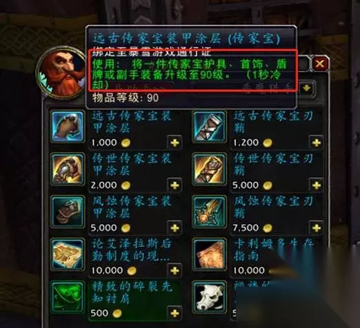 3、这里有一个传家宝商人,在这里可以升级到110级的传家宝。