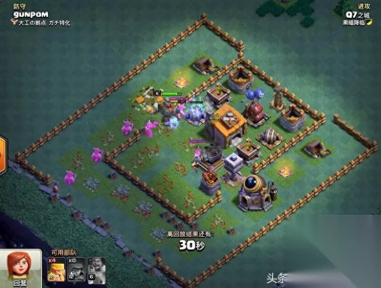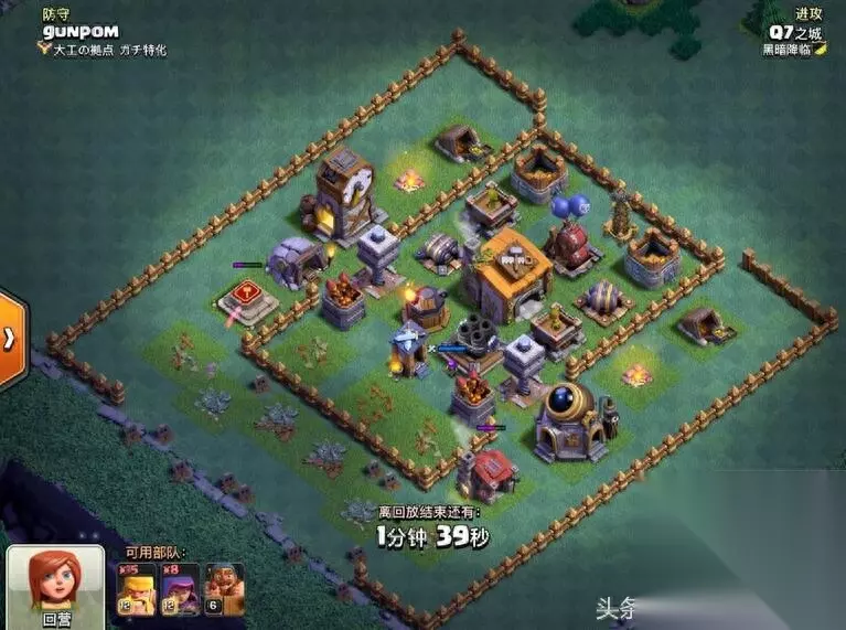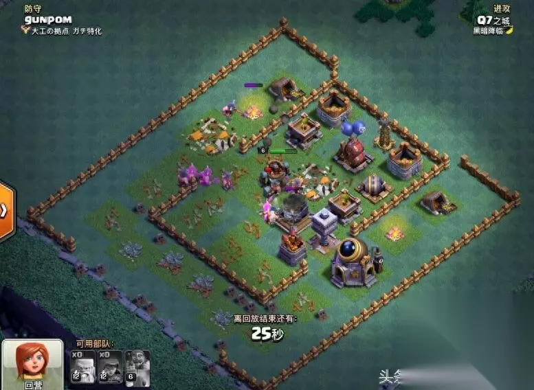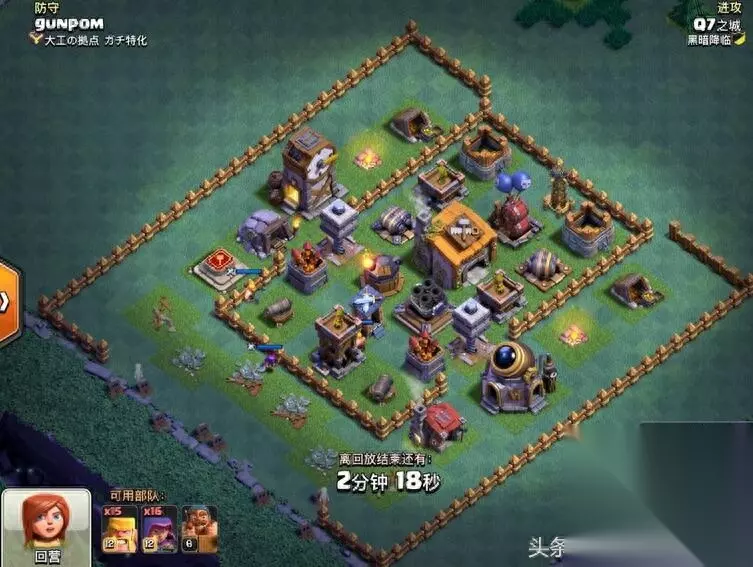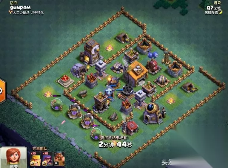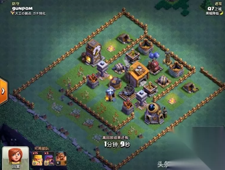 是不是很熟悉,有没有那么一点头疼。 包括自己也在用此类型阵,此阵最大特点防御布局合理 阵型框架紧凑 外圈隔离 中圈引导 内圈集火 无明显破绽 防守效果均衡,可以说没有特点就是最大的特点 对全流派都有很好表现 小七在往期阵型推荐中也有强力推荐。 图片解说正式开始: 好的习惯永远是保证成功的第一要素-Q7 开图必做三要素: 1、观阵-地图最大化 观察四角 外围 阵型整体框架 防御等级 2、策略-根据A的条件结合自身技术特点评估 选择 保二争三或稳一高百分比(请注意 夜世界进攻核心就是摧毁率 高摧毁率的一星比一星低百分比更重要 摧毁率优先级高于大本营) 3、配兵:依据A、B、评估结果 选择自己最熟悉的兵种 选择最熟悉的兵种 选择最熟悉的兵种 重要的事情说三遍 熟悉意味着稳定 稳定高于一切因为实战突发情况很多越熟悉的兵种于打法能让你更从容面对各种困难 根据上述综合评估 本战制定由外及内先打摧毁率后打星 保二争三的进攻计划 前戏1:利用弓箭手隐身天赋收外围第一层引导建筑