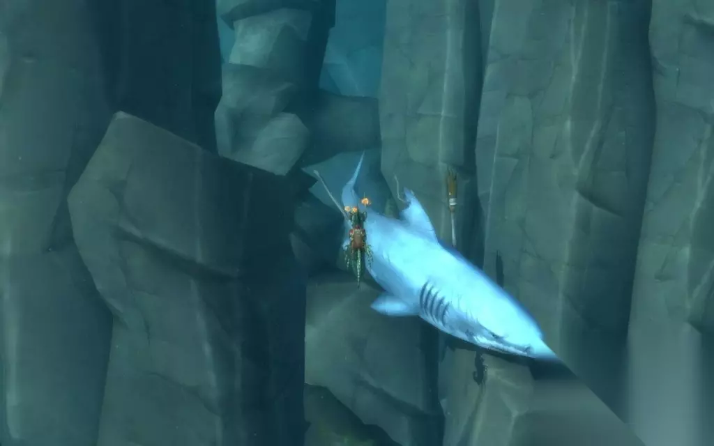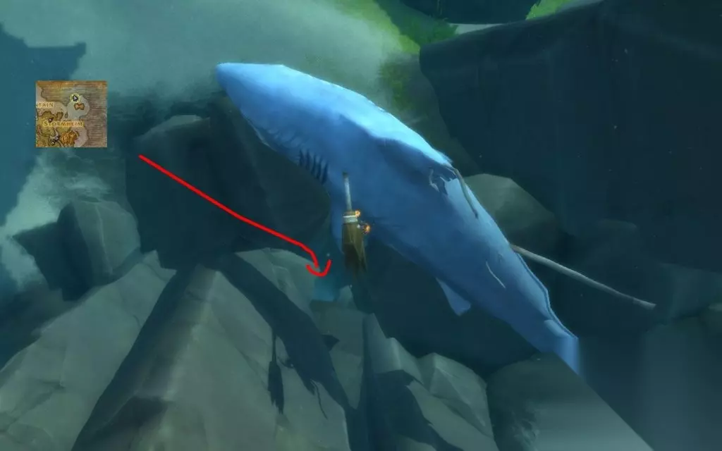 6号:风暴峡湾东北角有个盾憩岛,在岛的西北海岸可看到不远海面露出手持斧头的巨大石雕,石雕左侧水中黄名大鲨鱼正下方是洞穴入口。破碎群岛地图上坐标67,14。