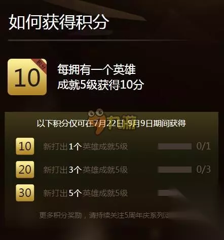 成就大师挑战赛活动地址 活动时间:7月29日-9月9日 活动网址:点此进入~ lol成就大师挑战赛活动须知 1、领取挑战:成就大师,打出英雄成就五级,挑战更高段位 2、参与周年庆活动领取更多积分,并在领奖之日根据段位领取奖励 3、请注意:只有在某大区拥有至少1个英雄成就5级,才可领取皮肤到这个大区 lol成就大师挑战赛如何获得积分? 每拥有一个英雄 成就5级获得10分