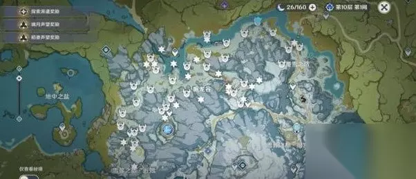 原神肃霜之路宝箱路线一览 肃霜之路区域的宝箱分布在地图上龙脊雪山的服近,参考下图所示;