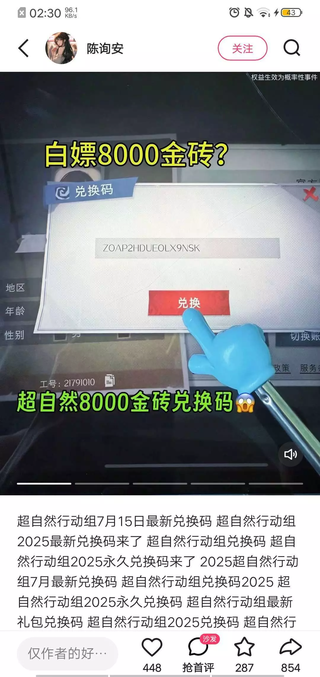 兑换码啊。