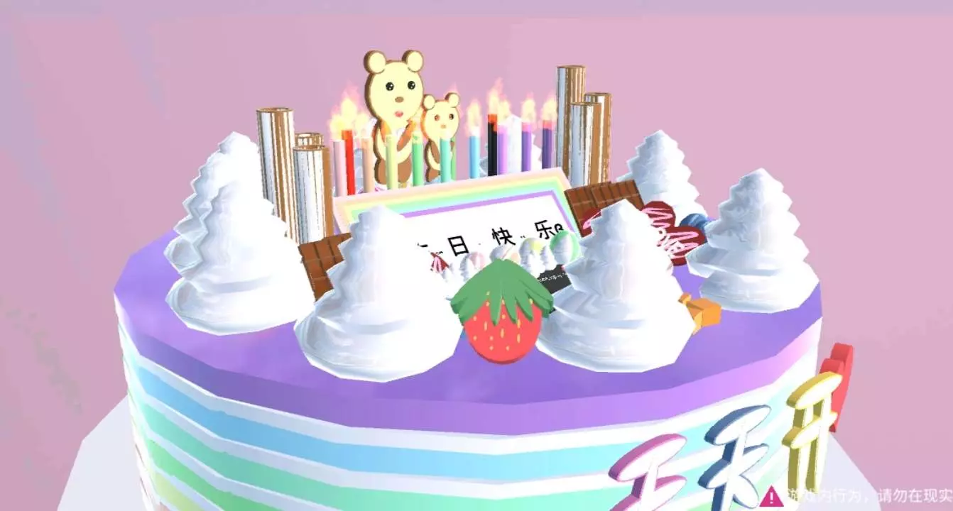 映入眼帘的是一个超大的彩色千层生日蛋糕🎂有没有想吃的🌚❓用时2小时 手还好🥰🥰 蛋糕🍰的装饰很多🎆有草莓🍓蓝莓🫐芒果块🥭饼干🍪奶油🥛巧克力(棒)🍫 还有15根蜡烛🔥和两只小熊🐻以及棒棒糖🍭 中间还有一个牌子 写着:生日快乐🎉