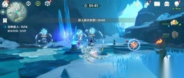 2、挑战要求我们在3分钟内中击败3个冰深渊法师和11个冰丘丘人。记得携带火属性角色。