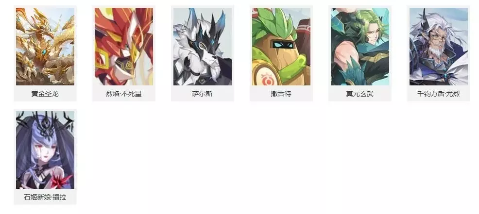 肉盾精灵: 黄金圣龙、烈焰不死星、萨尔斯、撒古特、真元玄武、千钧万盾尤烈、石姬新娘镭拉