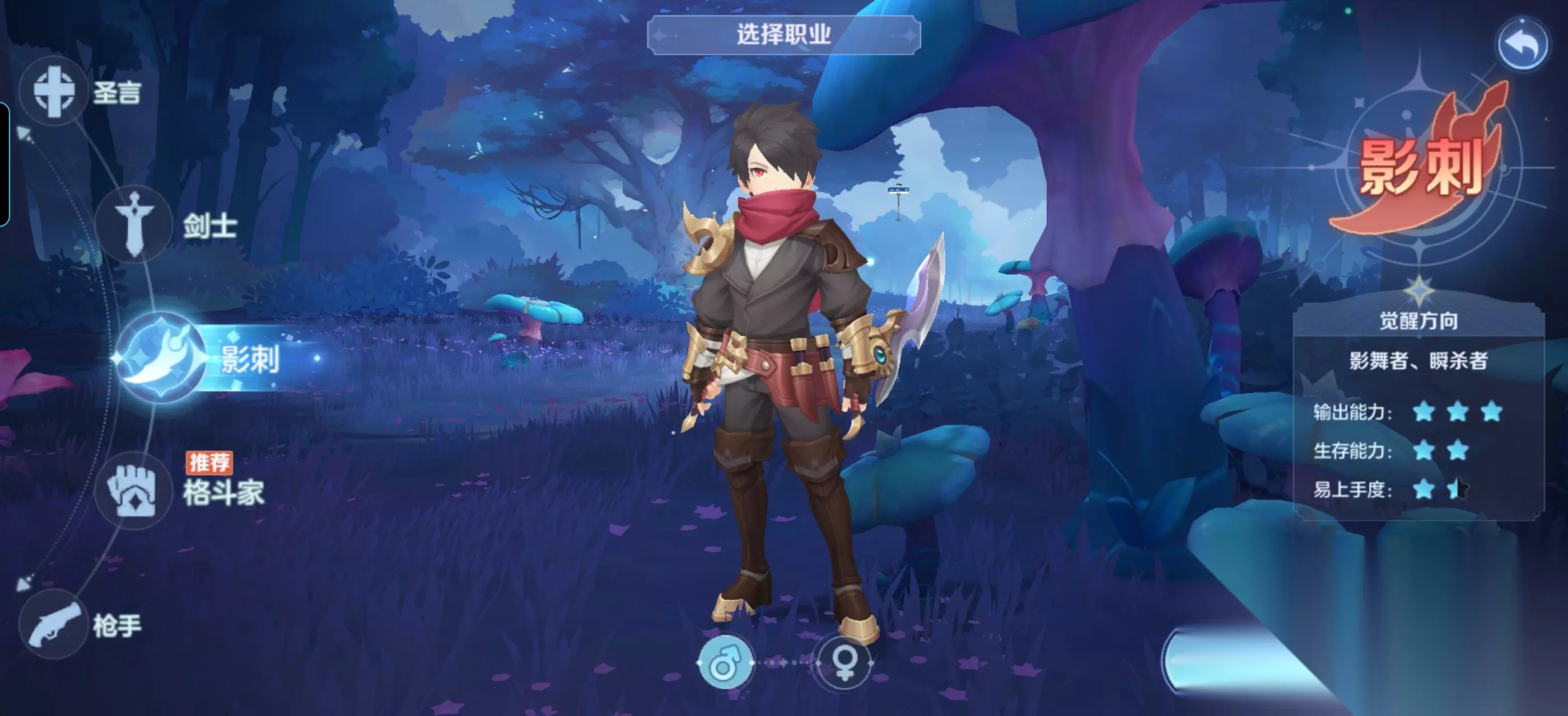 第二个是刺客影舞者,刺客是物理系输出前期唯一伤害能力还不错的职业,这得益于职业大招附带的流血效果,职业机动性还不错,操作性强,手法帝推荐。