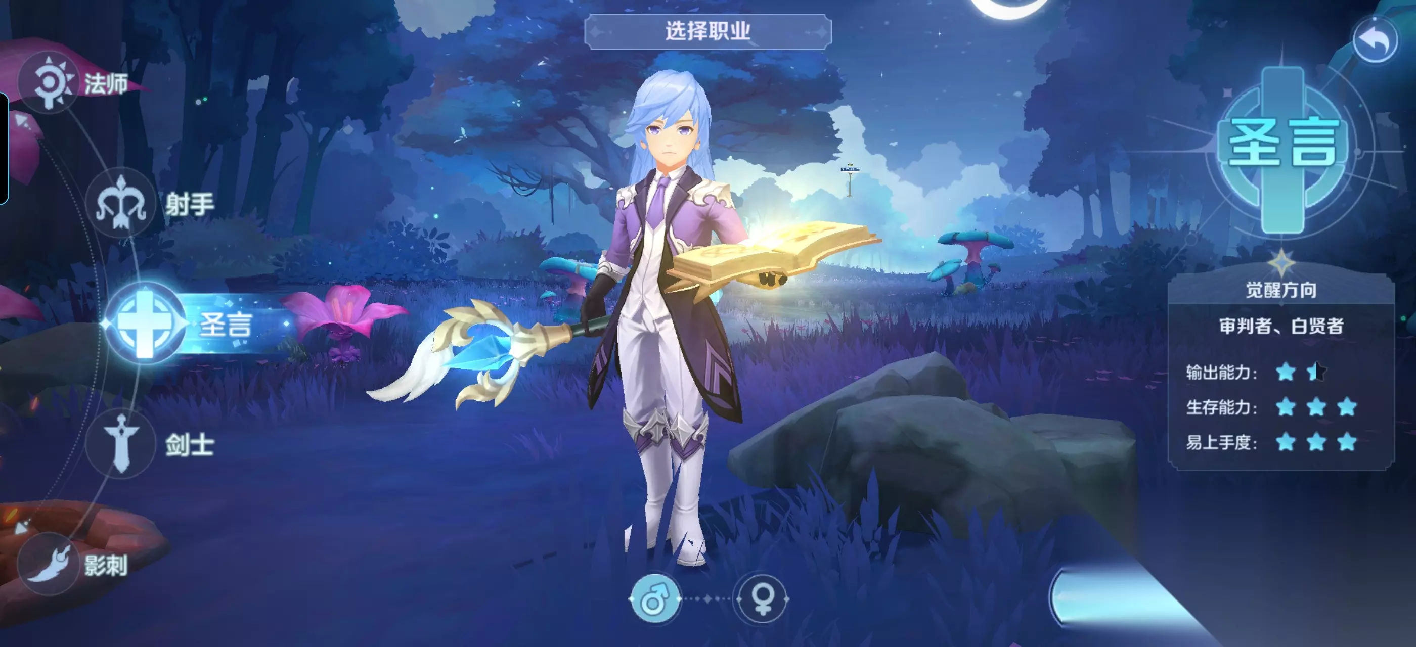 第三个法系职业是圣言白贤者分支,万金油职业,无论是副本开荒还是团战竞技都是必备,高坦度,上手非常简单,妹子玩家上手最容易的职业。