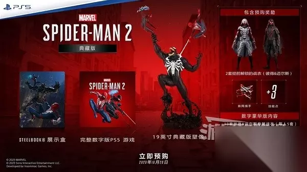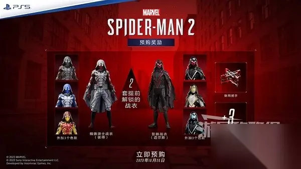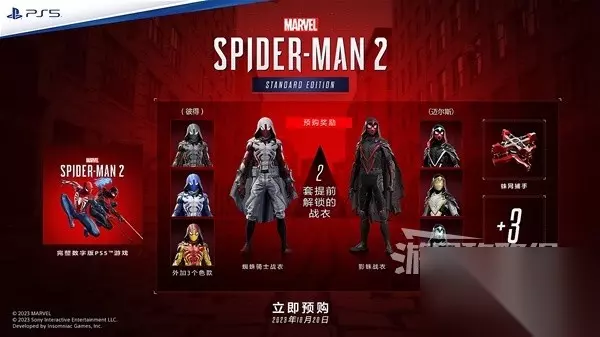 文章内容导航 购买指南-各版本区别 本作首发分为五个版本:数字普通版、数字豪华版、实体普通版、实体典藏版、PS5限定主机版 所有版本在发售前购买均可获得预购奖励,内容如下:预购奖励 可提前解锁的彼得蜘蛛骑士战衣(包含三种颜色)。 可提前解锁的迈尔斯影蛛战衣(包含三种色款)。 可提前解锁的蛛网捕手装置。 +3点技能点数。