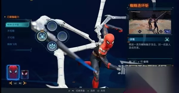蛛网打击:轻按△可以快速突进敌人,对付远程输出非常有效。长按△则可以解锁各种进阶玩法,比如可以投掷被蛛网舒服的敌人,将敌人拉到身边输出等等。