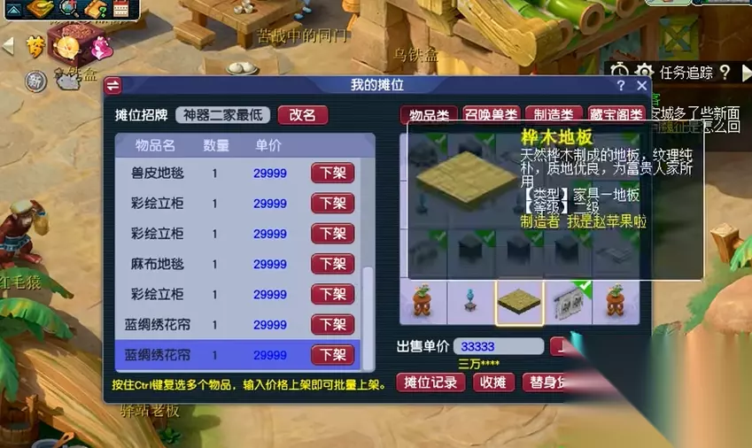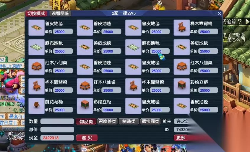 建议优先购买高价值且市价远低于成本的家具(如长信宫灯、八卦镇邪榻),而非自行制作。白天竞争激烈,玩家压价频繁,而夜间摆摊人数减少,供需关系更有利。若拥有店铺,可针对性调整夜间售价以吸引需求。可通过压价后收货策略控制市场,例如将某家具定价为14000游戏币,迫使周边玩家以更低价格抛售,再批量收购以囤积居奇。