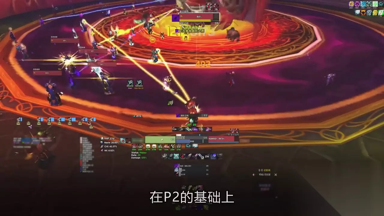 →一护盾宝珠,P3开始每次刷新两个。 →二邪恶镜像,随机召唤一名玩家的四个镜像,不吃空,需要副T拉到BOSS脚下一起A。 →三暗影之刺,引导时间内对多个随机目标发出导弹,10码的AOE附带降低50%治疗效果,通过战略规避。 →四烈焰之刺,点多个随机目标5码AOE,同样通过站位规避。