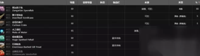 其他钓点:毒蛇神殿、幽暗沼泽、赞加沼泽(15%)