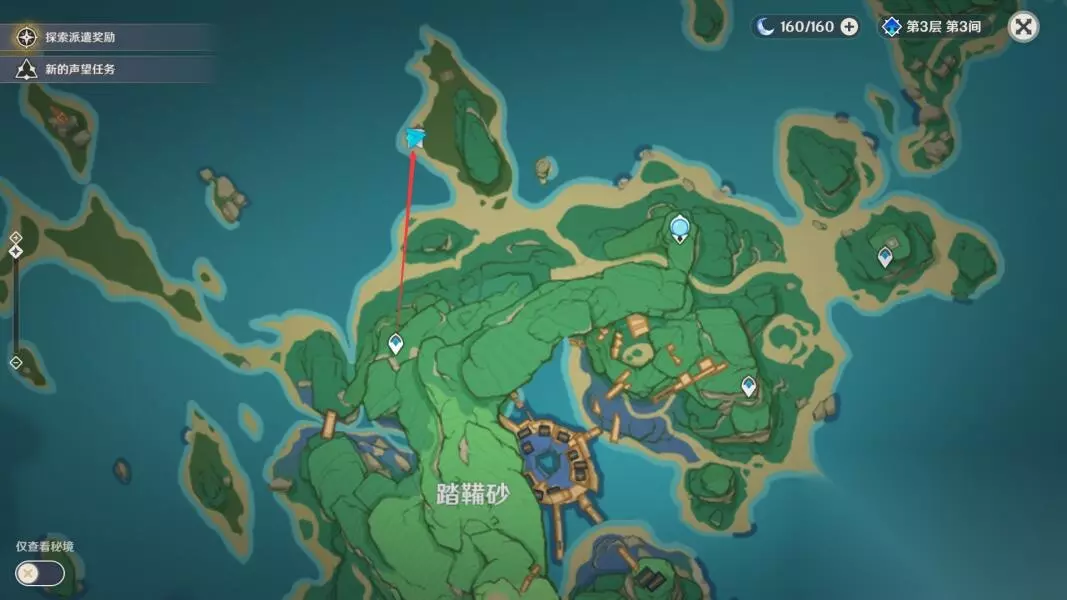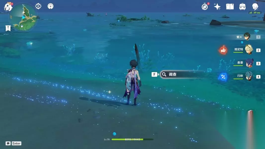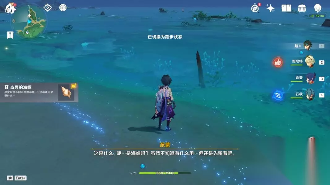 与海岸边的这些调查点交互,搜集「奇异的海螺」,阿敬每次会要3个才能让我们开宝箱。调查点还是挺多的,但不是每一个都会有海螺,也会蹦出来其他材料或者魔物