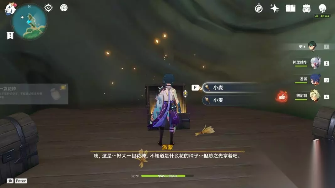 在我们第二天开到阿敬的宝箱后会获得任务道具「一袋花种」
