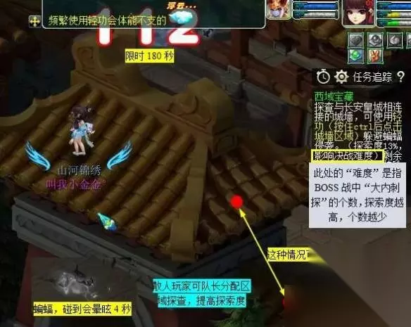 五色沙 1、获得:完成“西域宝藏”副本可获得 2、作用:可在【琵琶胡姬】(长安城 150.189)处兑换“敦煌主题”家具、庭院装饰等。 说明:道具可叠加30个,可交易、摆摊等。 副本流程 散人玩家:创建副本组好5人,找【琵琶胡姬】(长安城 150.189等任意一个左边)选择“西域宝藏副本”传送进入副本场景 五开玩家、固定队玩家:【副本官员】(长安城 199.160)快速开启 第一阶段:丝绸商路西段 1、丝绸商路(467.3)对话【河西驿使】获得【亲笔书信】道具; 2、前往丝绸商路西段(X<200)注意躲避“风沙”,碰到原地晕眩4秒; 3、到达指定位置后找【丝路贾人】对话2次; 4、前往都护府(51.75)附近击败【西域大盗】;