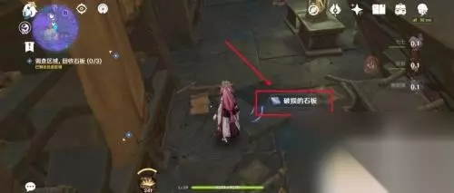 4.点击破损的石板 最后进入图书馆内部,即可在地上看到闪光的东西。点击破损的石板即可回收石板,完成解密。