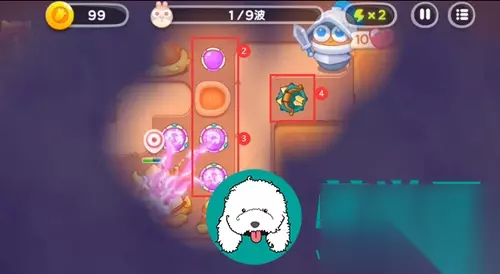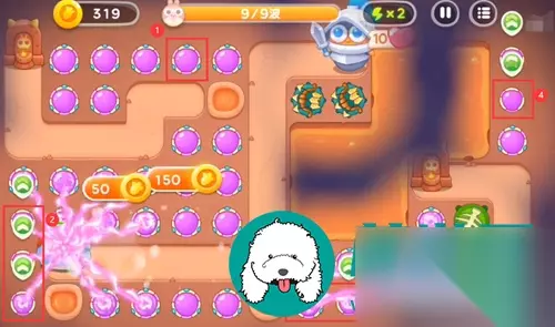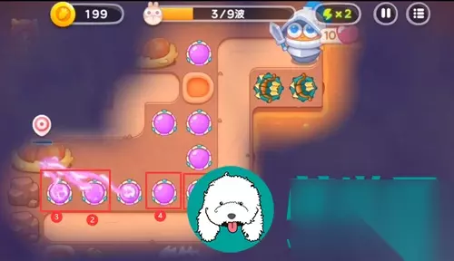 保卫萝卜4恶龙传说第9关攻略 1、开局两个魔法球,中间再一个魔法球,右边一个多重箭。