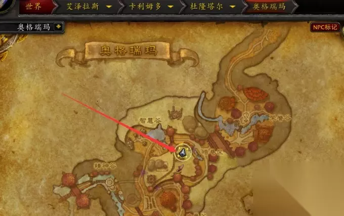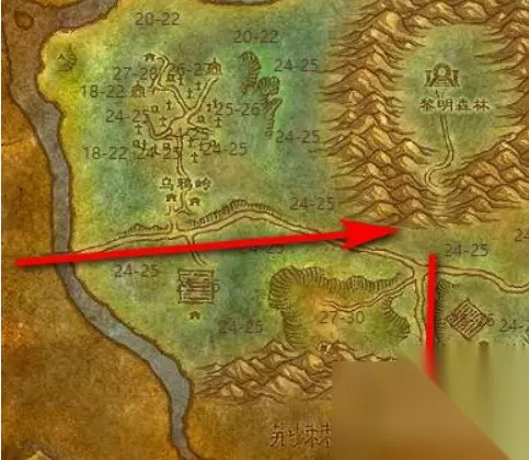 3、到暮色森林之后,需要沿着下图路线向南进入荆棘谷。