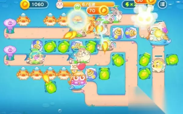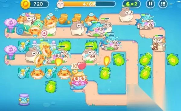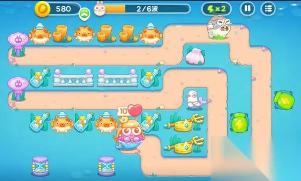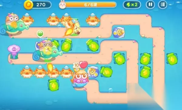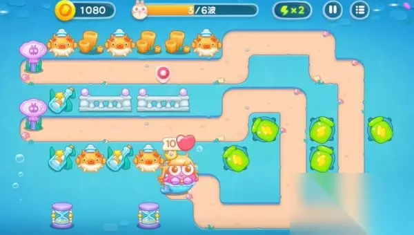 保卫萝卜4海的闺女第39关图文攻略,《保卫萝卜4》新篇章“海的闺女”,在蔚蓝深海构建防线,利用独特海洋炮塔抵御兔潮,揭开深海秘密,享受清新海洋风的策略冒险!以下带来保卫萝卜4海的闺女39金萝卜道具全清过关技巧。 1、首先升级关卡提供的两个河豚和火球,河豚用来清理怪物,火球清理右侧的障碍物。
