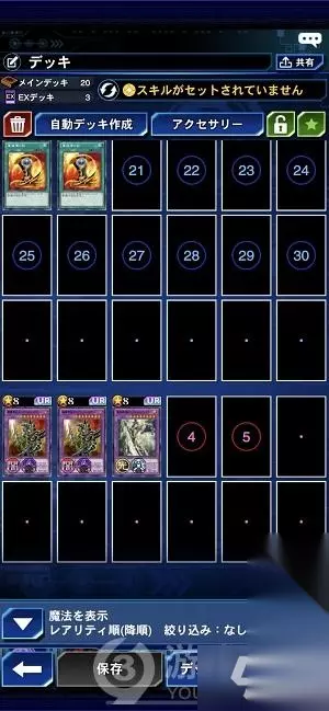 推荐技能:海马站在顶点的人(开场发动场地魔法:山) 游戏(小游戏)重新开始(开局重抽一次手牌,国服如没和谐就是神技) 吉斯(米国作弊佬/A与C之间)交换(不和谐的话是无限制使用,和谐了就不推荐) 打法:1.先手的话巨龙圣骑士拉青眼白龙当装备卡,如果对手回合破坏了巨龙圣骑士就第二回合创世龙骑士拉墓地青眼白龙。后手可以看情况上卡,但是还是优先上两个骑士。 2.把弧光龙扔进墓地也是一种复活白龙的手段,也可以当做表侧陷阱卡,魔法卡的破坏手段。 3.用好坑卡。 可以根据自身情况更改魔法,陷阱,连锁以外的卡牌和某些卡片数量。心镇壶可以换拘束解放波。 2.超魔导剑士融合卡组