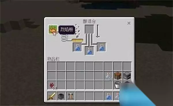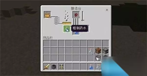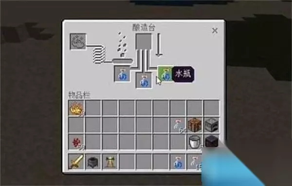 5、点击酿造台,在下面放置3个水瓶。