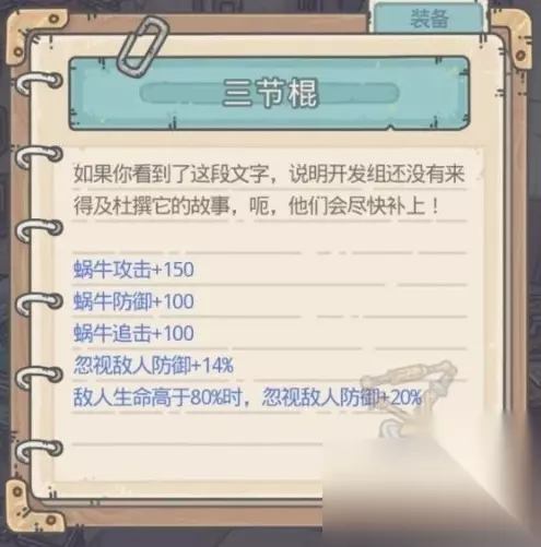 5、当第二次他们来的时候,就进行战斗,击败他们之后我们就能过的橙色贵重品—三节棍了。
