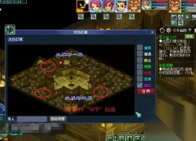 3、来到了一个幻境入口,点击元辰进入辰水幻境。 4、进入幻境后你可以选择躲避喷泉,躲避有成就。也可以选择不躲避直接组队后飞到天台即可。