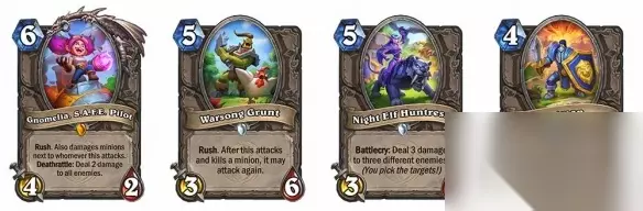 按照惯例,核心系列每年都有更新,今年回归的旧牌中最值得一提的包括火车王和加强到5费的图哈特,以及回调到2费的小斧子等等。退环境的包括帕奇维克、滋养、暗牧的本尼迪塔斯、新红龙、暴风城可交易牌等,同时也有一些纳斯利亚堡的地标牌作为常青机制代表保留在标准里。时光之穴也有牌加入。 还有一个机制层面上的回调——萨满的第四个图腾又变回法强了。 这次也有全新卡牌加入核心系列,并且这4张在主题风味上都来自魔兽大作战。这也算是大魔兽间的联动。