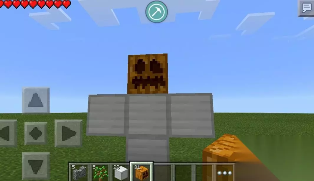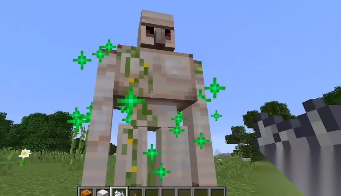 第二种就是玩家收集材料自己制作,需要铁和南瓜。玩家需要先去挖矿,多带一些铁矿回来,再将其放在熔炉里面炼制成为铁块。接着玩家需要去野外寻找南瓜,或者从别的地方搜到的南瓜灯。回到村庄将一个铁块放在地上,再在上面放置三个,让其呈现一个T字的形状,最后把南瓜放在最上层最中间的铁块上。这个南瓜可以由玩家手动放置,也可以使用发射器进行放置。这个结构只要大致上的形状是对的就行,无论是直立状态还是躺平状态都可以。当我们刚放下南瓜后,它就会变成铁傀儡了。铁傀儡会主动来到村庄,在村庄附近缓慢的行走,来保护一些村民。