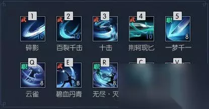 【云雀】 是当其他技能CD时,可以使用1~5的无尽剑气来获得一个暂时的护盾,大推云雀不管是PVE或PVP,有时这招救了碎梦很多次(笑)。 【碧血丹青】 这招是拿来填充用的,乱使用可是会很常躺地板的哦。(可替换【剎那】或者【月影碎空】)。 【流星追月】 也是拿来填充用的,但个人觉得这是在逃脱后,马上回到原位置输出的好技能,效果中等见仁见智。(可替换【黯灭】或者【入梦之光】)。 PVP