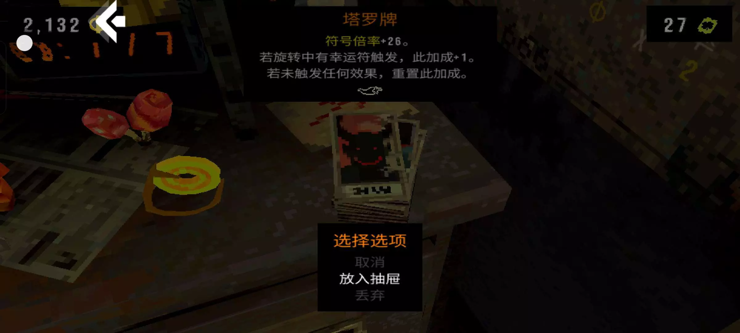 用最后的手和塔罗牌,再把硬币都存进去,用到只能转一次就可以稳定触发塔罗牌再带两个辣椒,钱币,幻菇,污渍这些道具直接无敌