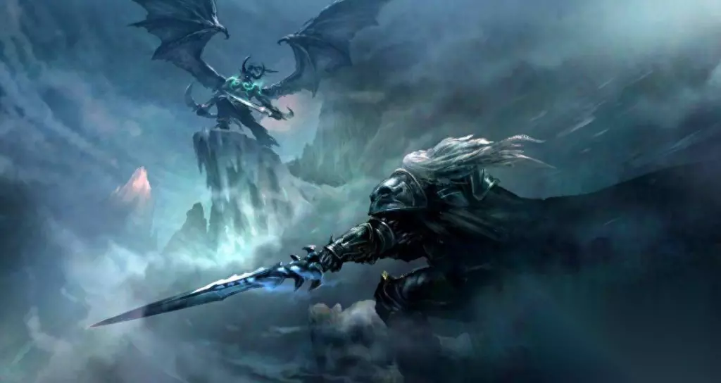 埃辛诺斯战刃与霜之哀伤的对决 吸收了古尔丹之颅力量的伊利丹彻底变成了恶魔形态,遭到了暗影精灵的再次放逐,这时基尔加丹找到了被放逐的伊利丹,以力量为交换的条件要求伊利丹消灭天灾军团的巫妖王阿尔萨斯;在冰封王座上伊利丹手持埃辛诺斯战刃找到了阿尔萨斯进行了对决,一把是利用邪能制造的武器,一把是聚集了数以万计怨灵的武器,最后由于霜之哀伤的力量过于强大伊利丹战败,战胜后的阿尔萨斯和统御王冠融为一体成为了新的巫妖王,但是也使得阿尔萨斯受到了重创,后续产生了连锁反应,咱们的女王"希尔瓦娜斯·风行者"也借机挣脱了统御王冠的束缚。