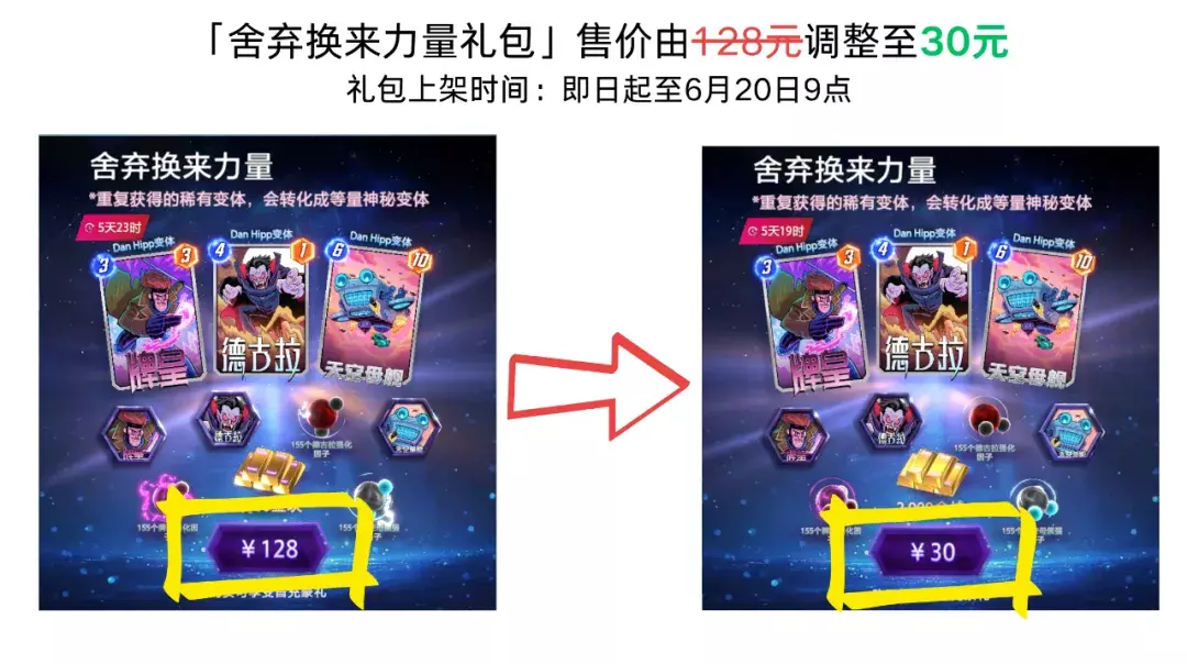 在6月14日的商店更新中,因团队操作失误,将价值128元的「舍弃换来力量礼包」错误标价为30元。当我们发现时,已有部分探员购入了礼包。