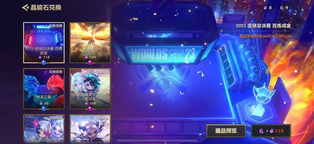 本期晶能召唤限时返场【2023全球总决赛 百炼成金】竞技场,售价为118晶能石!
