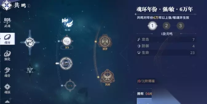 魂骨共鸣:分为年份、四肢星级及头躯星级三个类别分队对应不同的要求点亮共鸣。 年份共鸣提升思路:现阶段版本直接点亮5万年满阶段,需要18个星级魂骨达到5万年就可以点亮满级共鸣。 四肢星级共鸣提升思路:现在阶段版争取点亮4星魂骨满阶共鸣,需要20个4星魂骨就可以点亮满级共鸣。 小技巧说明:从魂骨的年份和四肢星级体系就能明白:我们通过邪化、活动获得的每一块星级魂骨都至关重要。在此给出一个核心建议:千万不要将它们用于“3换1”,这绝对是血亏的操作!请坚持每日刷取,耐心积累。终有一天,你的背包里会堆满各式星级魂骨,届时你的首要任务,就是将它们先全部慢慢升至4星。 头躯共鸣提升思路:目前看来头是可以通过猎魂悬赏获得,躯干只能氪金,星神玉商店每个月的卡池可以兑换。